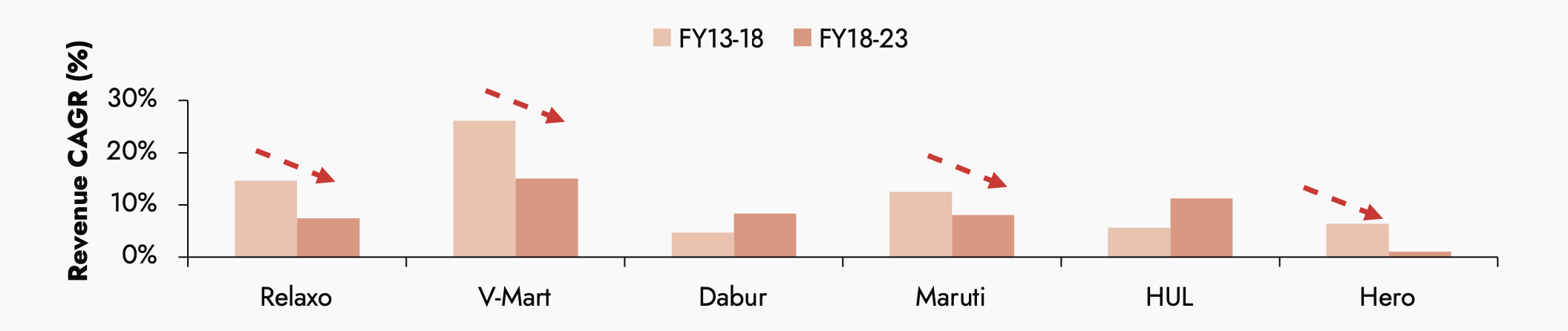 Exhibit 8: FY18-23 Revenue CAGR has been lower than FY13-18