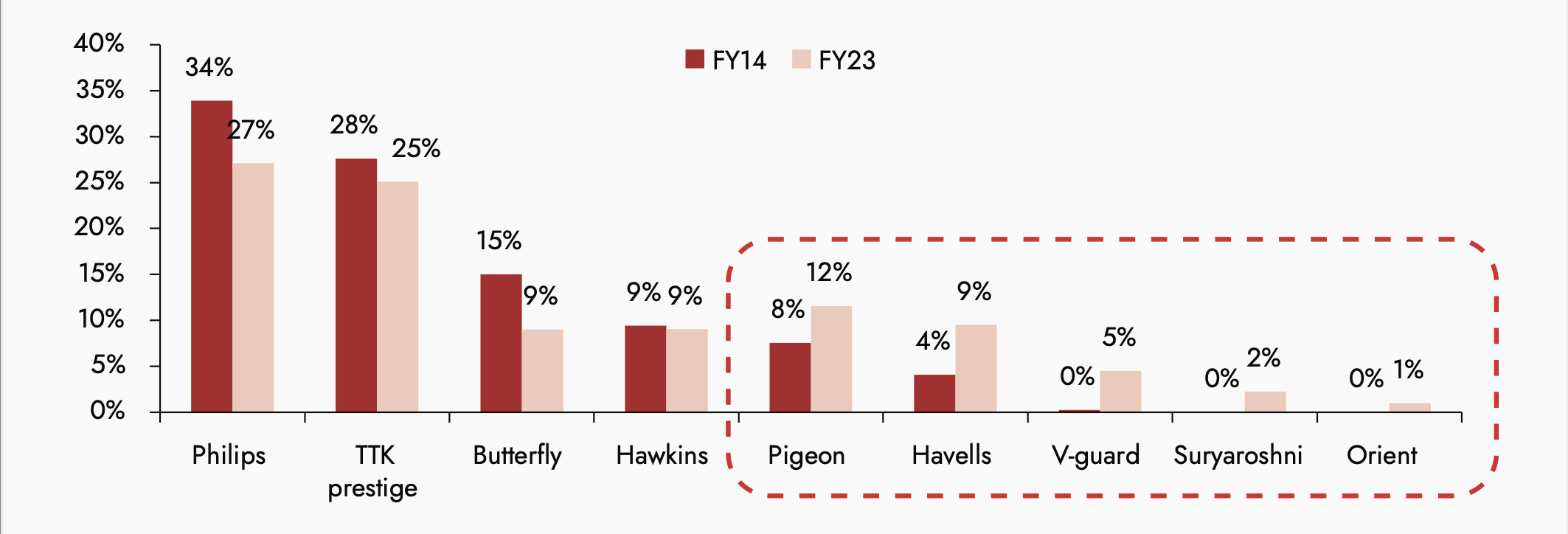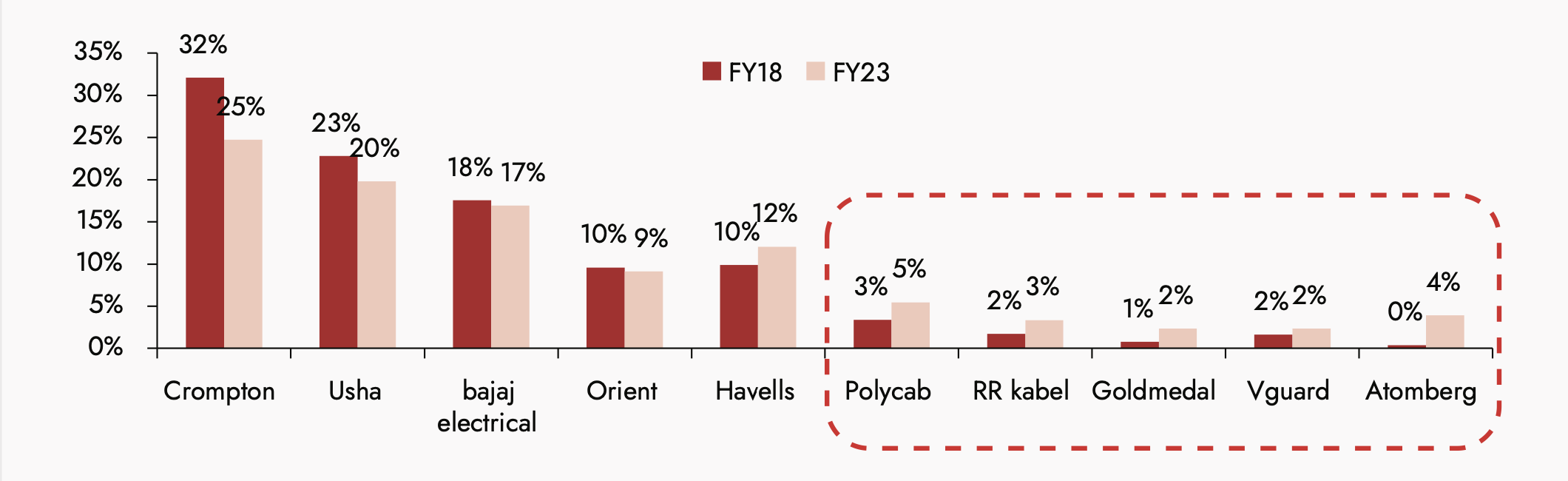 - Rising competition from organised players: Another observation from the trade is the increasing competition due to decisions taken by several companies to enter into new categories. This trend is evident across multiple categories like consumer durables, cables and wires, kitchen appliances, fans, apparel. Resultantly incumbents have faced challenges with many of these new entrants adopting distorted pricing strategies to make in-roads.