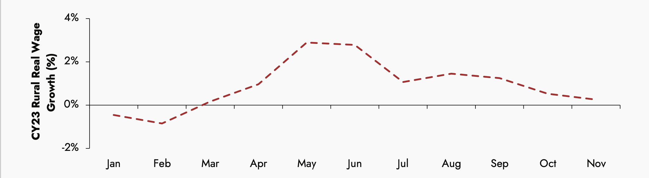 Exhibit 20: Rural real wage growth has been in the positive territory since Mar ‘23