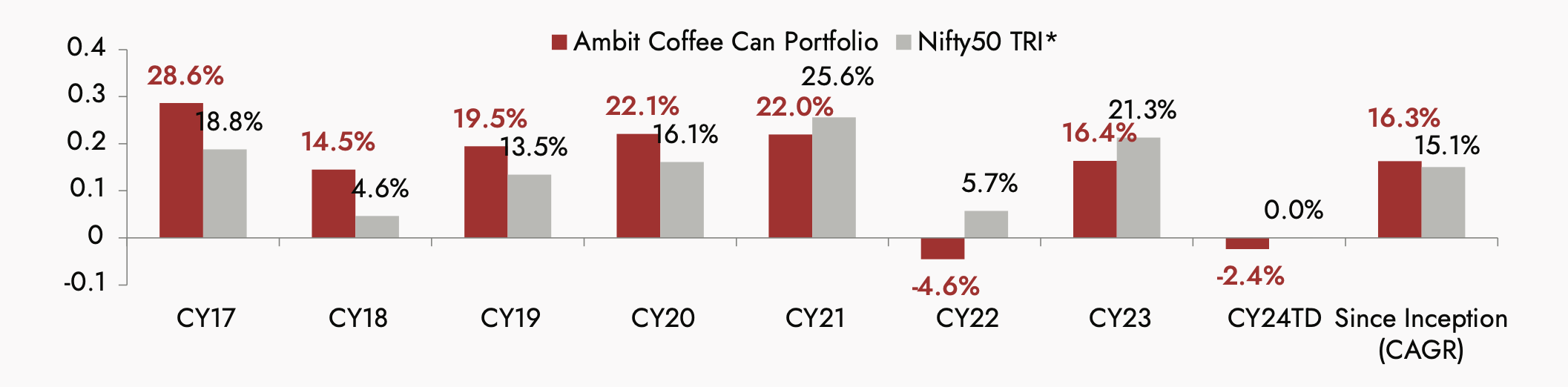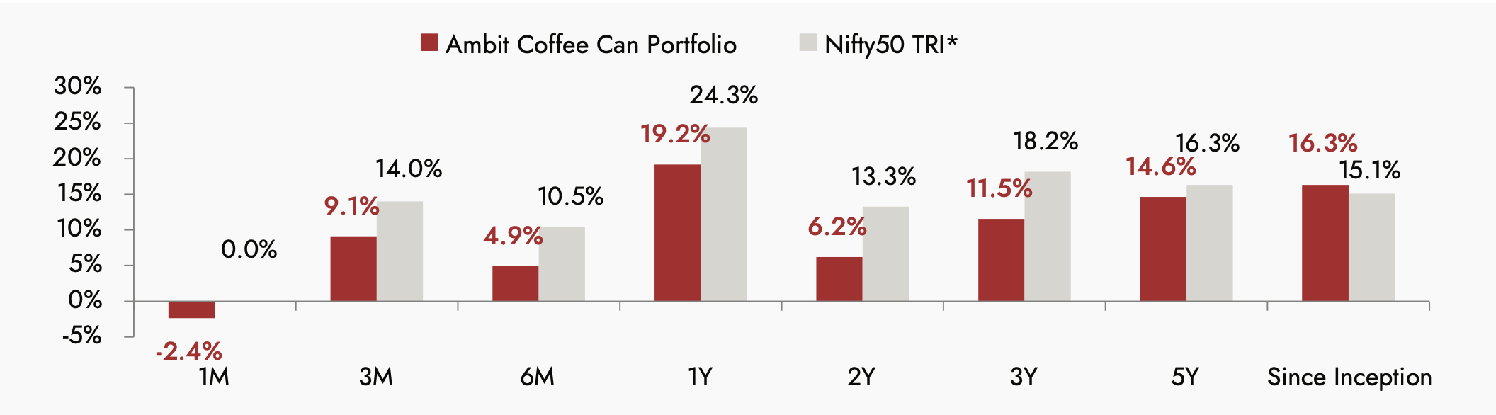 *Nifty 50 TRI is the selected benchmark for the Ambit Coffee Can Portfolio and the same is reported to SEBI.