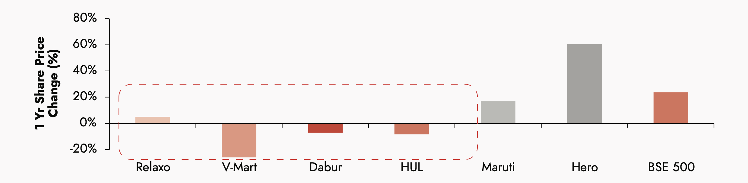 - Mass footwear companies like Bata/Relaxo witnessed significant decline in profitability;