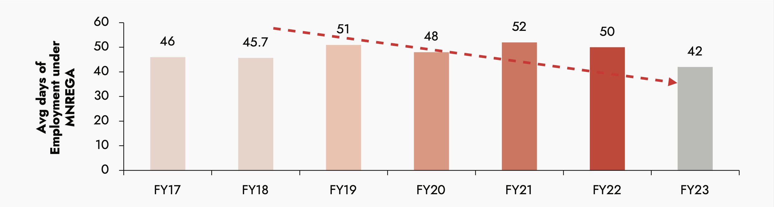 Exhibit 13: MNREGA average employment days have fallen below pre-COVID levels