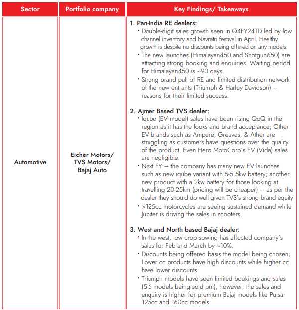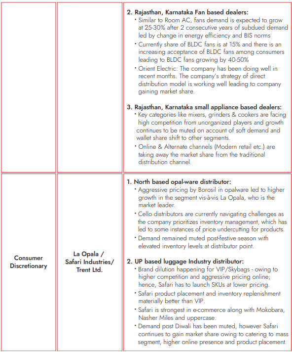 Channel checks include speaking with the channel partners like dealers, distributors, suppliers and meeting with competitors. We do this exercise every quarter before the result season to corroborate our thesis on each of our portfolio holdings. Channel checks are done on a pan India basis and not in a specific region; this allows us to understand trends in more granularity.