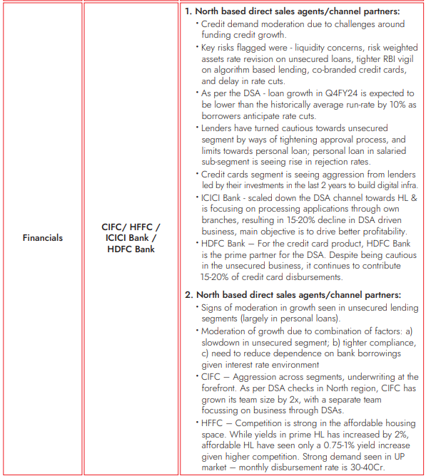 - In financials, banks have become very cautious on unsecured lending led by regulatory tightening. Overall credit growth is also seeing some moderation led by tight liquidity and rising RBI vigilance on algorithm based lending.