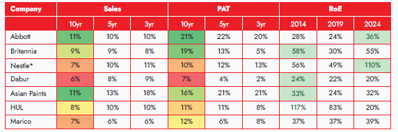 Abbott’s consistency and sustained high growth over the last 10 years (sales CAGR of ~11% and PAT CAGR of ~21%), in the midst of muted industry growth and increasing competitive intensity, are noteworthy. If one were to rank high-growth resilient companies across domestic pharmaceutical and consumer staples in terms of growth, consistency and enduring moats, Abbott would emerge as the top-ranking one across both sectors. As such, it is one of the most unique companies under our ‘Established Coffee Can Companies’ bucket.