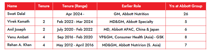 - Top management volatility – Abbott’s rise as a strong pharmaceutical brand in India was led by Mr Rehan Khan in the 2010s, which was pushed forward by Mr Venu Ambati when he took over in 2016. However, in the ensuing 4 years, ever since Mr Venu was promoted to global role within Abbot Group in 2020. Abbott India has seen three different MDs at the helm. Though this churn does not seem to have impacted the company’s performance adversely, it is a cause of concern. While we would have certainly loved more certainty at the helm, we are reminded of a famous quote by Peter Lynch – "invest in businesses any idiot could run because someday one will." The new CEO is an old-timer at Abbott Group and hopefully will have a longer stable stint and provide the much needed growth impetus.