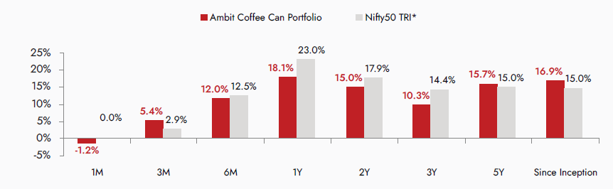 Source: ##Ambit Coffee Can Portfolio inception date is Mar 6, 2017. #Returns are net of all fees and expenses; Returns above 1yr are annualized