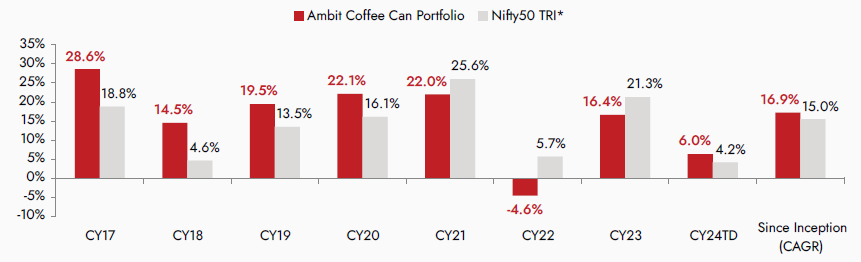*Nifty 50 TRI is the selected benchmark for the Ambit Coffee Can Portfolio and the same is reported to SEBI.