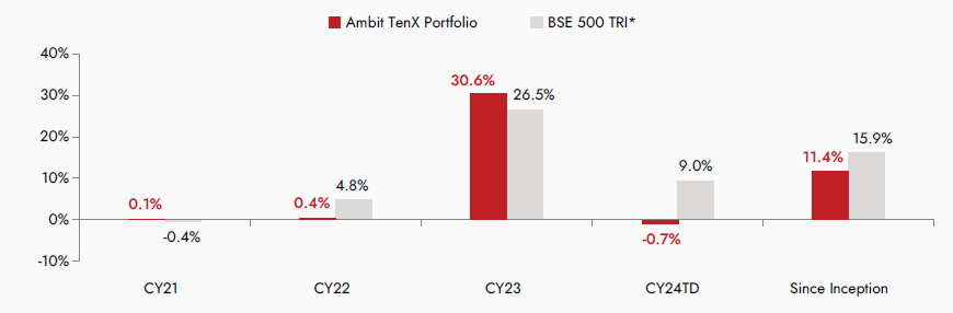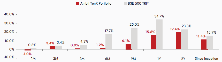 Source: ##Ambit TenX Portfolio inception date is Dec 13, 2021. #Returns are net of all fees and expenses; Returns above 1yr are annualized