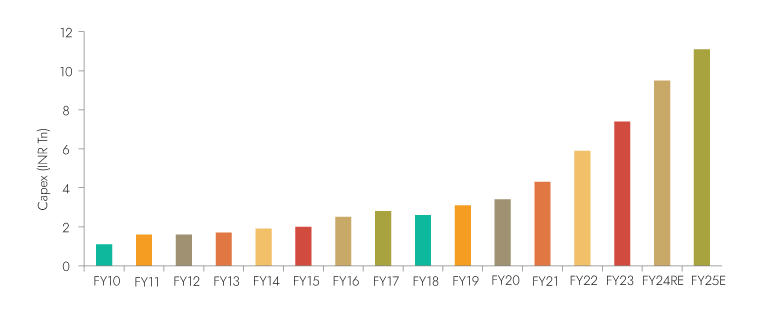 Exhibit 5: Capex across key segments has been moderating in FY25