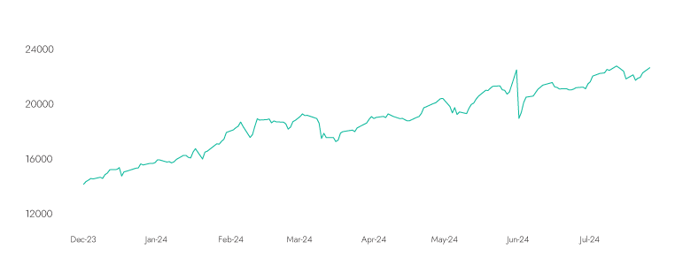 **1M Return: 1st - 31st Jul'24; 3M Return: 1st May'24 – 31st Jul'24; 6M Return: 1st Feb'24 – 31st Jul'24; 1Y Return: 1st Aug'23 – 31st Jul'24 *Nifty 50 TRI is the selected benchmark for the Ambit Coffee Can Portfolio. The same is reported to SEBI. In addition to the same, we have included MSCI India for information purposes only. The same should not be relied upon for performance benchmarking in any manner.