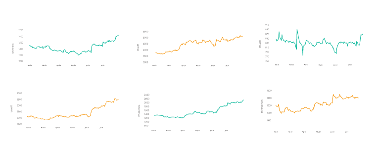 By analyzing company transcripts, macroeconomic trends, and industry market shares, we highlighted emerging themes such as mass apparel, mass retail, consumer durables, and mass footwear as areas poised for strong performance in the near future. Since then, the companies we spotlighted within these themes have demonstrated significant improvements, validating our earlier predictions and reflecting the robustness of the rural recovery we anticipated. Since exit polls until 31st July, FMCG Index has delivered 15% returns against BSE500 8%. Select consumer oriented businesses charted below have returned 30-45% during same period.