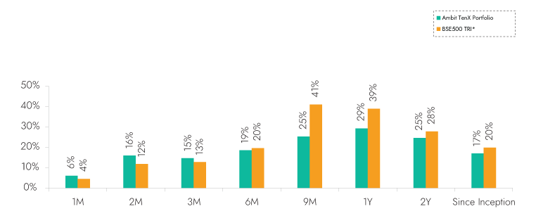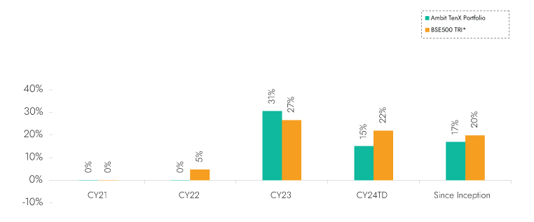 Ambit TenX Portfolio inception date is Dec 13, 2021; *BSE 500 TRI is the selected benchmark for the Ambit TenX Portfolio. The same is reported to SEBI.