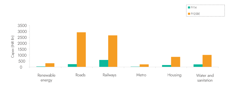 Exhibit 3: There has been a strong CAPEX push in sectors like roads and railways since FY14