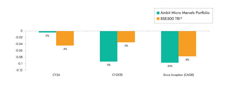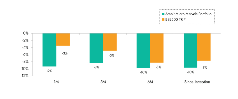 Source: Ambit Micro Marvels Portfolio inception date is Jul 29, 2024;**1M Return: 1st - 31st Jan'25; 3M Return: 1st Nov'24 – 31st Jan'25; 6M Return: 1st Aug'24 – 31st Jan'25; 1Y Return: 1st Feb'24 – 31st Jan'25