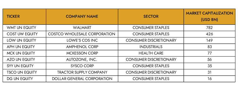 Exhibit 7: Top 10 Pricing Power Companies Reoccurring with Highest Frequency Since Index Inception in Bloomberg Pricing Power Index