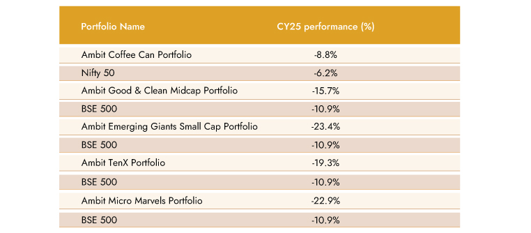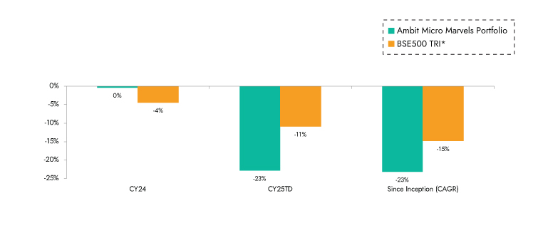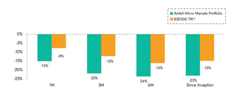 Source: Ambit Micro Marvels Portfolio inception date is Jul 29, 2024;**1M Return: 1st - 31st Jan'25; 3M Return: 1st Nov'24 – 31st Jan'25; 6M Return: 1st Aug'24 – 31st Jan'25; 1Y Return: 1st Feb'24 – 31st Jan'25