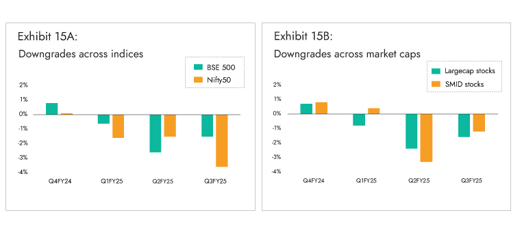 Exhibit 15: Earnings downgrades in Q3FY25 have been severe, inflating panic on the streets