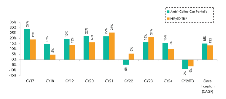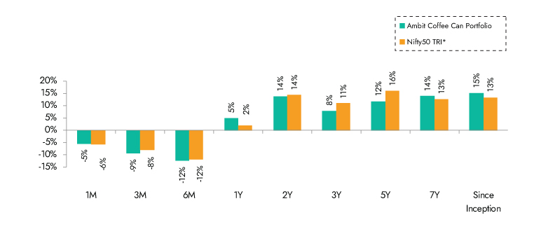 *Nifty 50 TRI is the selected benchmark for the Ambit Coffee Can Portfolio. The same is reported to SEBI.