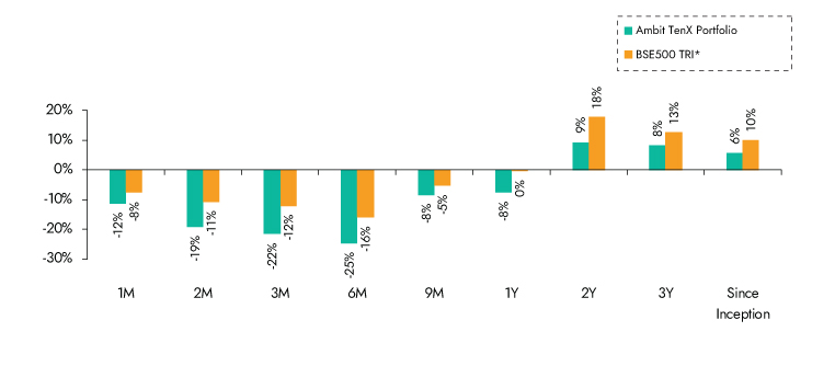 *BSE 500 TRI is the selected benchmark for the Ambit TenX Portfolio. The same is reported to SEBI.