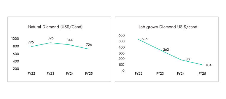 Wider price range: LGDs cost 50–70% less than natural diamonds, making diamond jewellery far more accessible. This affordability allows brands to target younger demographics, drive everyday wear usage, and create repeat purchase cycles—a concept historically alien to the natural diamond category.