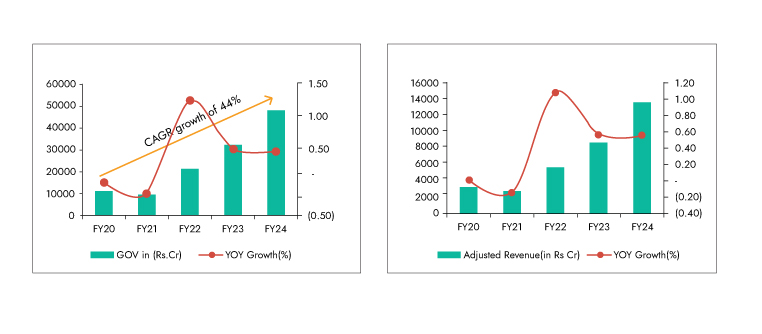 Exhibit 15: Zomato GOV (B2C Business) CAGR 44% Exhibit 16: Zomato's revenue grew 44% CAGR in 5 years