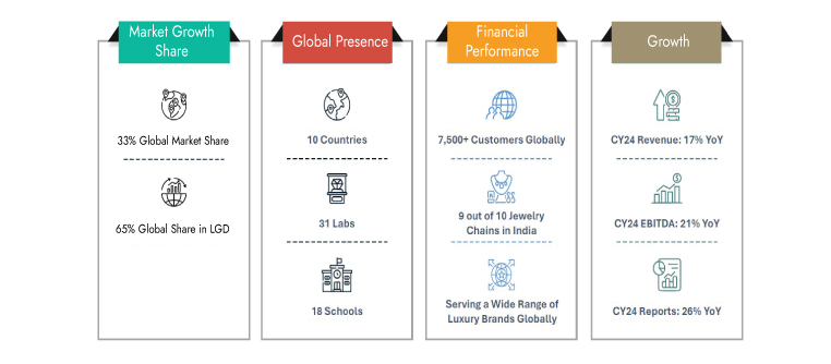 Attracting and retaining talent is the key to IGI's market position: IGI has implemented comprehensive training programs to enhance the skills of its gemologists, ensuring adherence to international grading standards. IGI laboratories are supported by 800+ gemologists (as of Mar’25), and research personnel who stay updated with technology advancements in gemology and actively participate in global programs. IGI has a rate of ~10.7% in CY24, which is one of the best in the industry, which is at ~25-30%. attrition