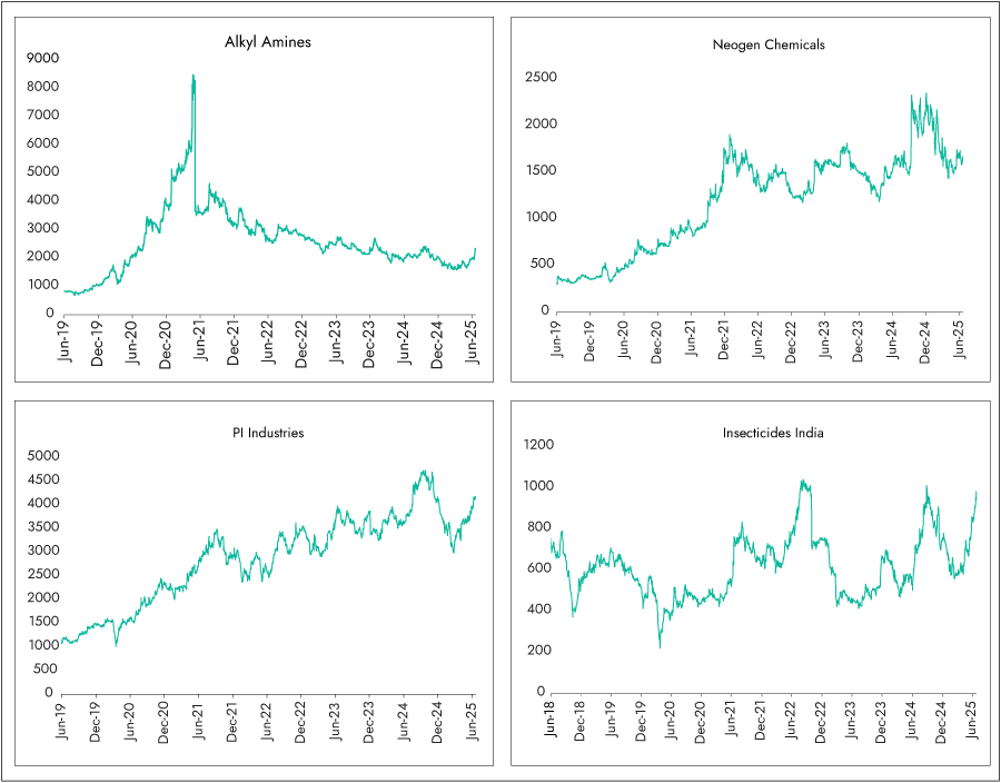 - We believe Indian chemicals and particularly sub-segments like agrochemicals, contract manufacturing, import substitution, and supply diversification are poised for a structural recovery, and our portfolios are well placed to take advantage of the same.
