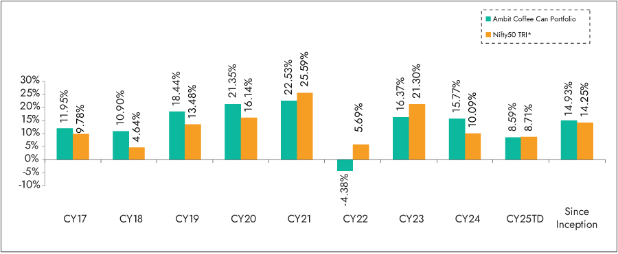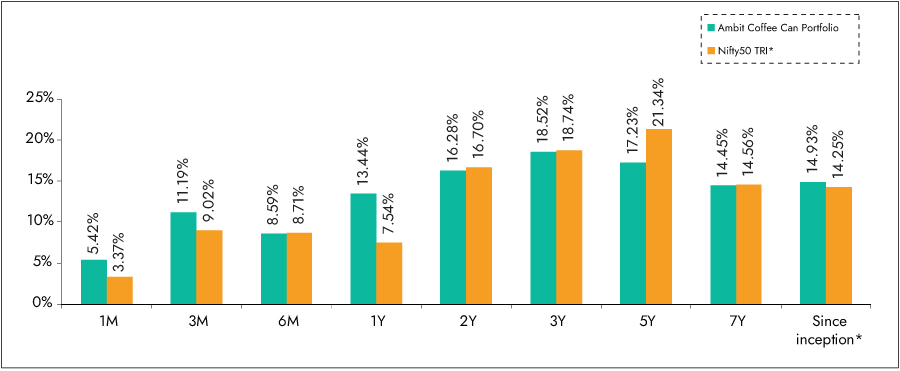 *Nifty 50 TRI is the selected benchmark for the Ambit Coffee Can Portfolio. The performance related information provided herein is not verified by SEBI.