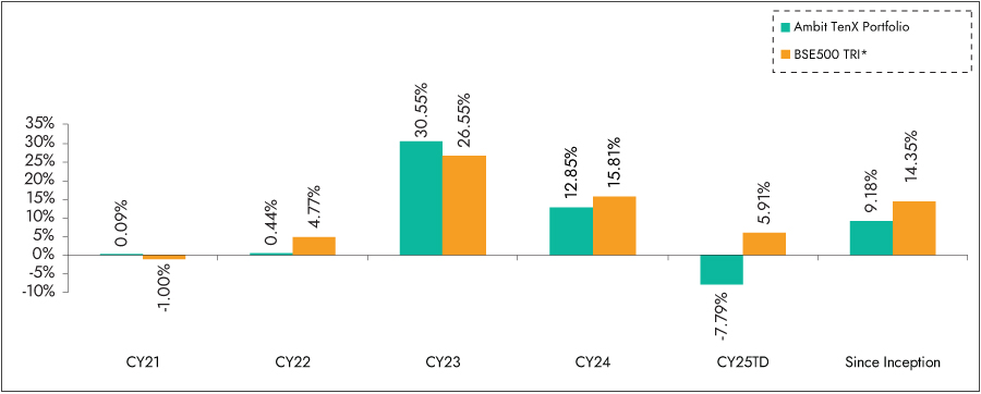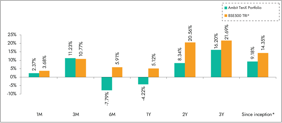 *BSE 500 TRI is the selected benchmark for the Ambit TenX Portfolio. The performance related information provided herein is not verified by SEBI.