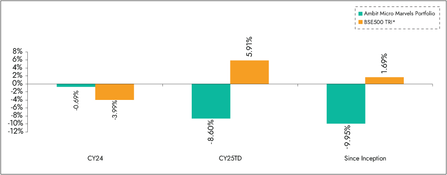 *BSE 500 TRI is the selected benchmark for the Ambit Micro Marvels Portfolio. The performance related information provided herein is not verified by SEBI.