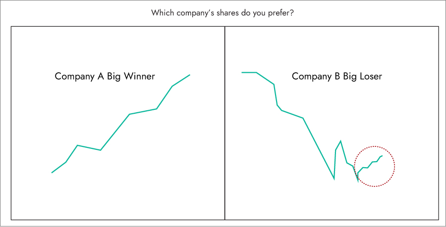 I’m in love: Rabbits ignored all negative news on the stock given their affection towards the company. They failed to match reality with their initial view of the company and were unwilling to accept new findings.