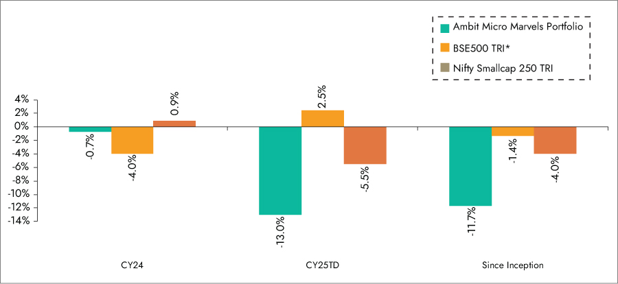 **BSE 500 TRI is the selected benchmark for the Ambit Micro Marvels Portfolio. The performance related information provided herein is not verified by SEBI.