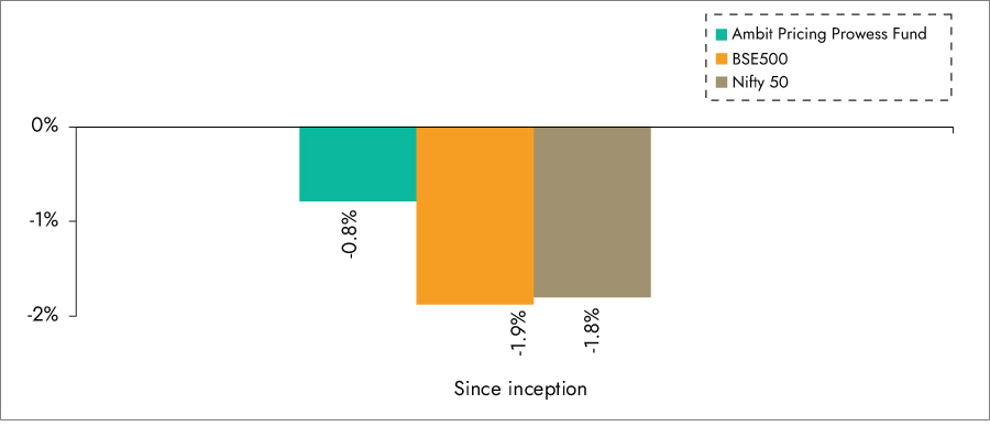 Note: Data as on 30th Sept 2025; First close for Ambit Pricing Prowess Fund was done on 24th Sept 2025; Returns are computed at Fund level and are post fees and on pre-tax basis. Returns of BSE 500 and Nifty 50 is being provided solely for additional reference and comparison. The performance related information provided herein is not verified by SEBI.