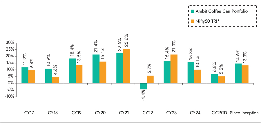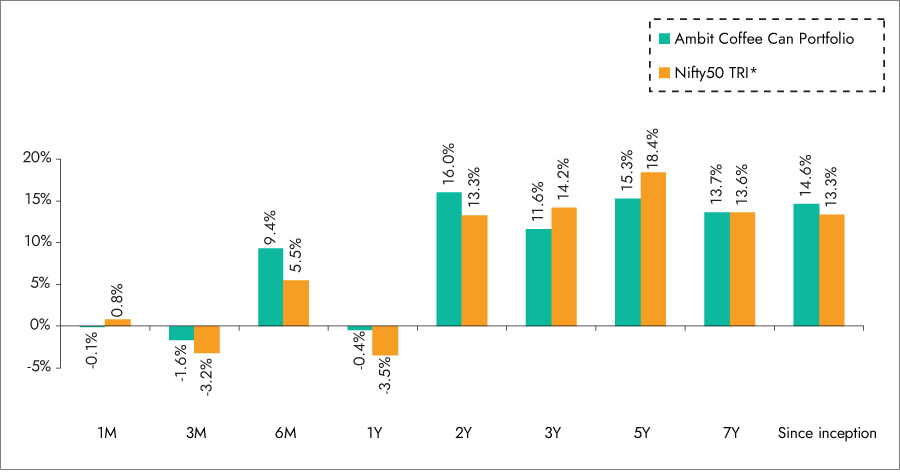 *Nifty 50 TRI is the selected benchmark for the Ambit Coffee Can Portfolio. The performance related information provided herein is not verified by SEBI.