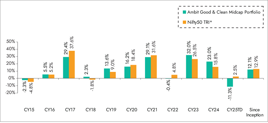 Exhibit 8: Ambit Good & Clean Midcap Portfolio calendar year performance