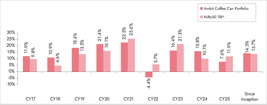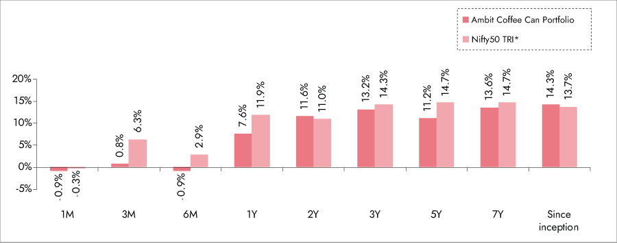 *Nifty 50 TRI is the selected benchmark for the Ambit Coffee Can Portfolio. The performance related information provided herein is not verified by SEBI.