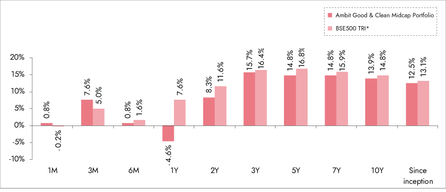 Source: Ambit Good & Clean Mid cap Portfolio inception date is Mar 12, 2015;