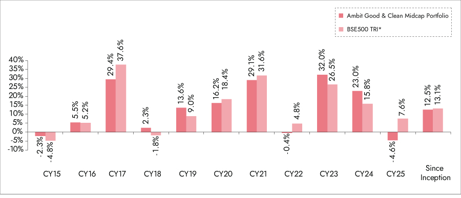 Exhibit 19: Ambit Good & Clean Midcap Portfolio calendar year performance