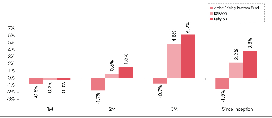 Note: First close for Ambit Pricing Prowess Fund was done on 24th Sept 2025; Returns are computed at Fund level and are pre fees and on pre-tax basis. Returns of BSE 500 and Nifty 50 is being provided solely for additional reference and comparison. The performance related information provided herein is not verified by SEBI.