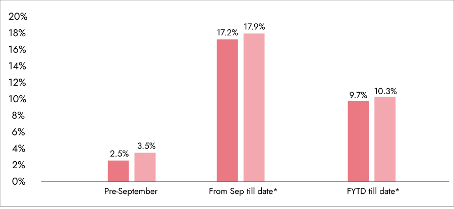 Exhibit 4: …resultantly, the Auto sector has outperformed the BSE 500 index post announcement of GST cut