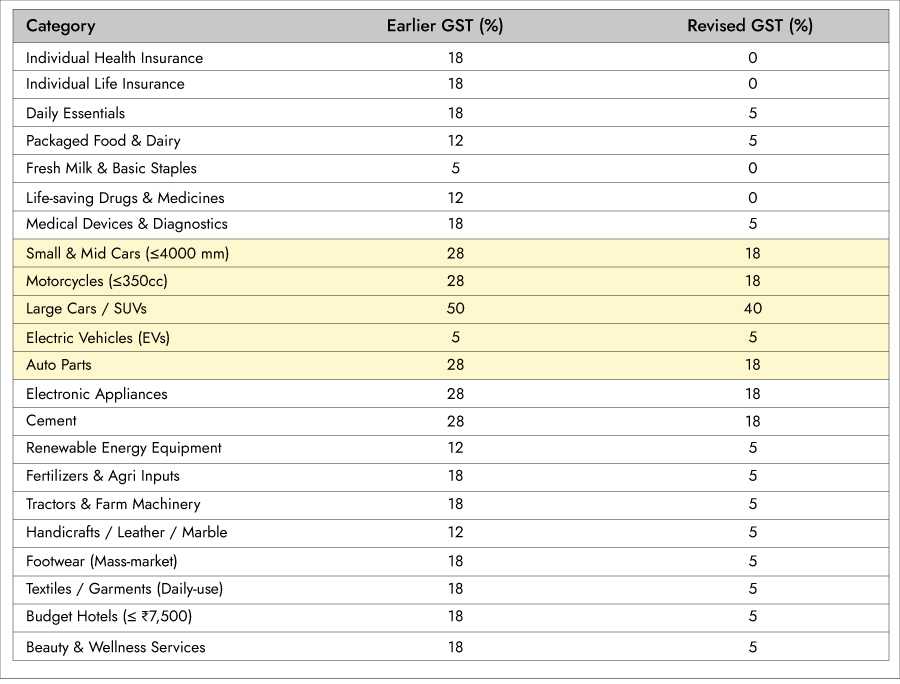 - Mahindra and Mahindra: “Overall, I think this is a very, very good move by the government because for the longer term, it simplifies things as well as reduces GST. And there will be, in our view, a fairly strong multi-year benefit from this move” (Q2 FY26 Result Commentary)