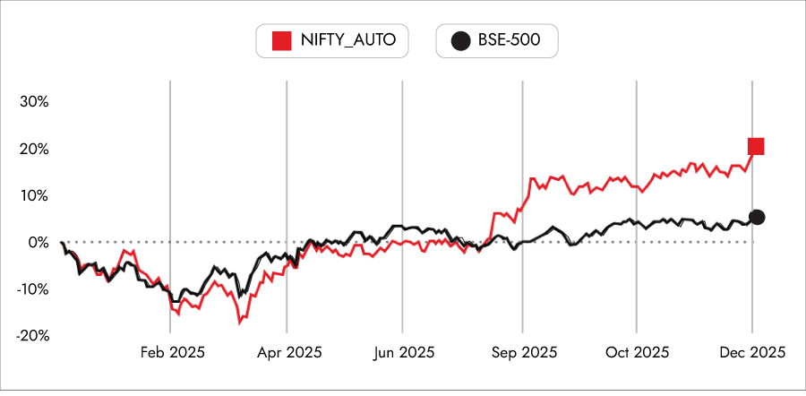 Auto Sector has outperformed the BSE 500 in 2025 led by the GST cut announced recently