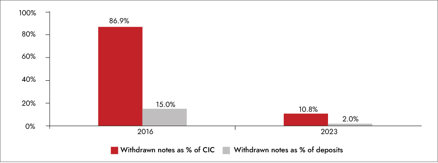 Exhibit 1: Impact of withdrawal of Rs2,000 notes is expected to be limited given the lower share